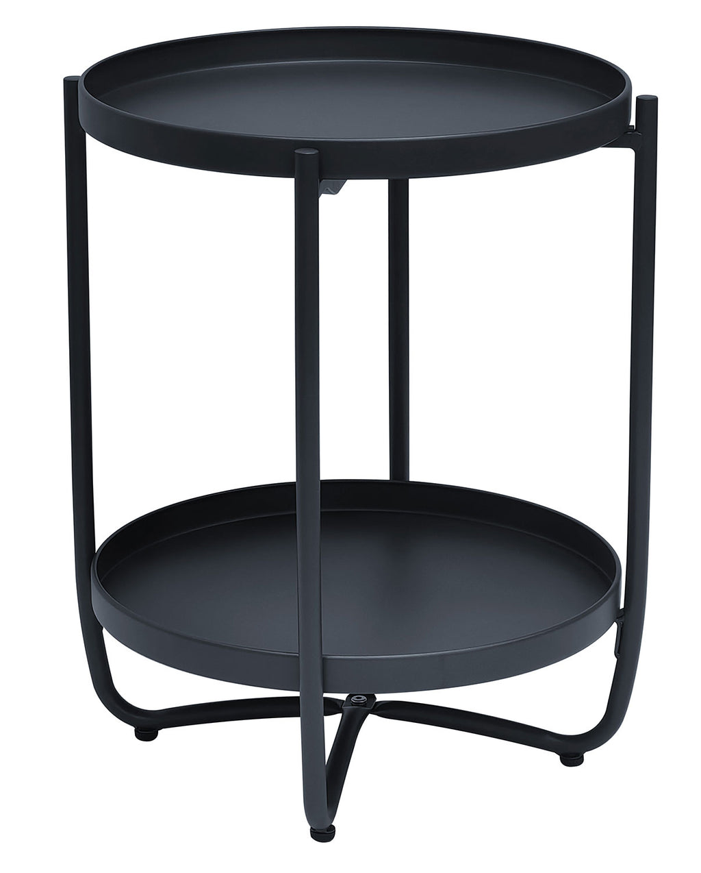 Tavolino da Giardino 2 Ripiani Ø43x52 cm in Ferro Nero
