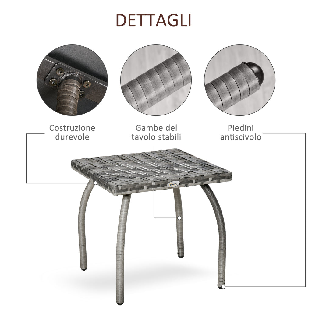 Table basse de jardin 45x45x44 cm en rotin synthétique gris