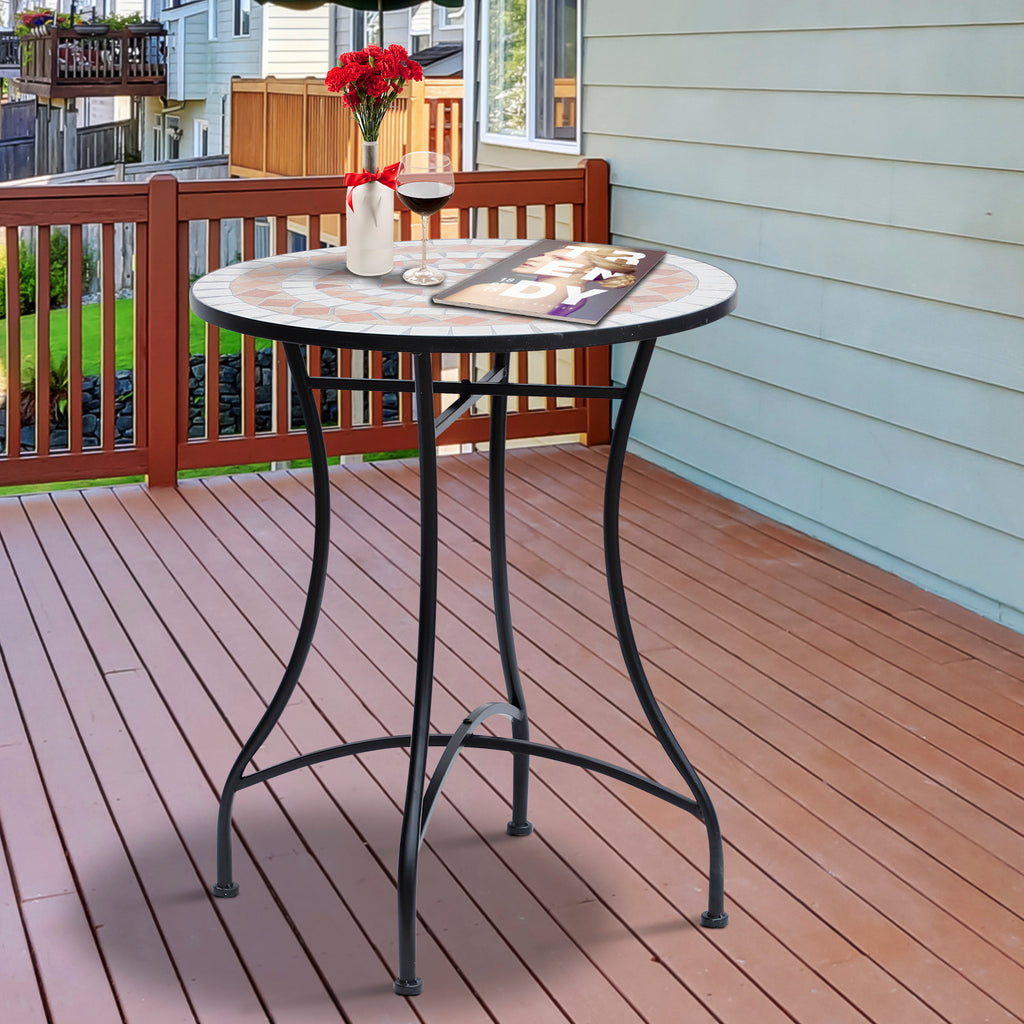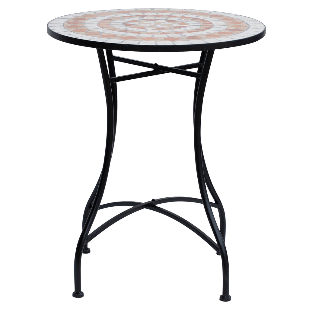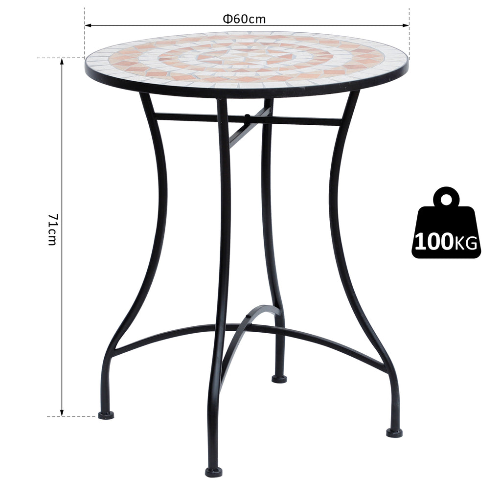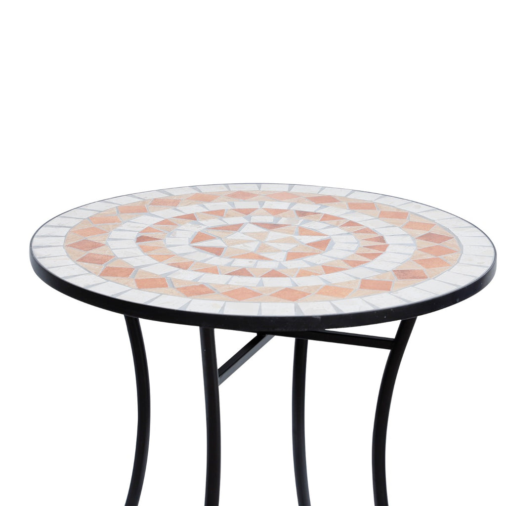 Table basse de jardin Ø60x71 cm en céramique mosaïque orange et blanche