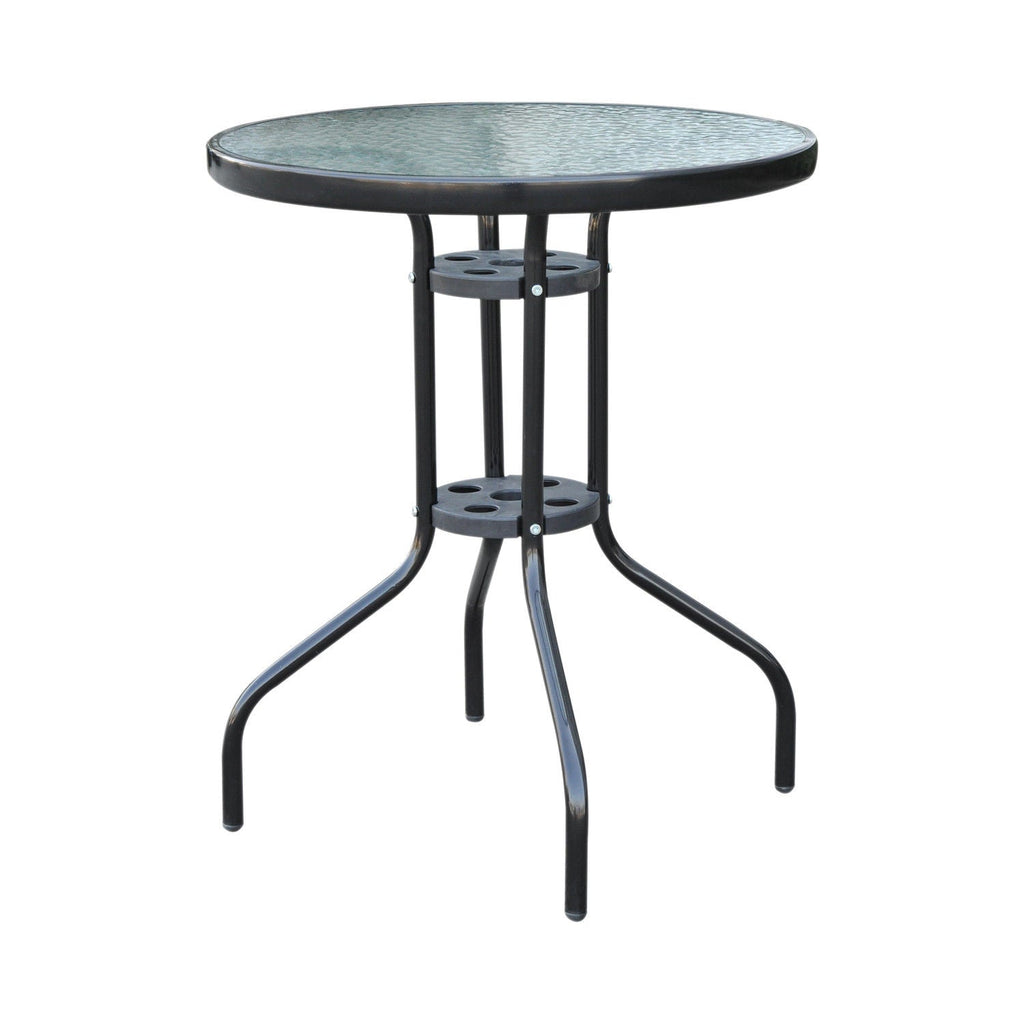 Table Basse de Jardin en Fer avec Plateau en Verre Trempé Noir Ø60x70 cm
