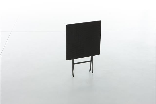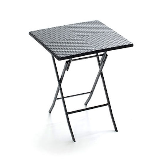Structure de la table en fer poudré gris foncé, surface d'appui en HDPE (polyéthylène haute densité) noir avec traitement UV, épaisseur de la surface d'appui 2,8 cm,cm 62 X 62 h 73 (ouvert). 94,5 X 62 X 9,5 cm (fermé), section tubulaire mm. 14 X 28, épaisseur tubulaire 1,0 mm