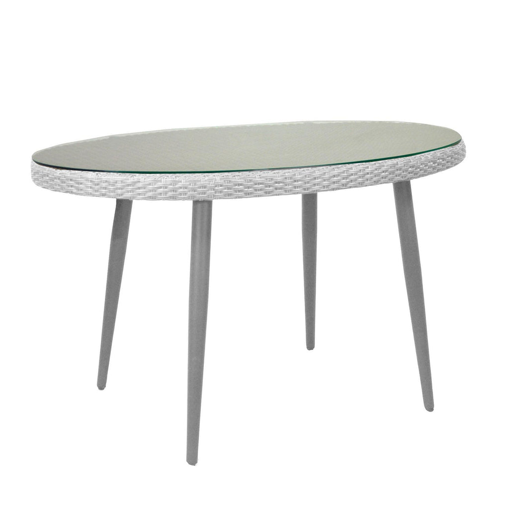 Table basse de jardin ovale polyrotin 128x73x76 cm Adami Adila blanc crème