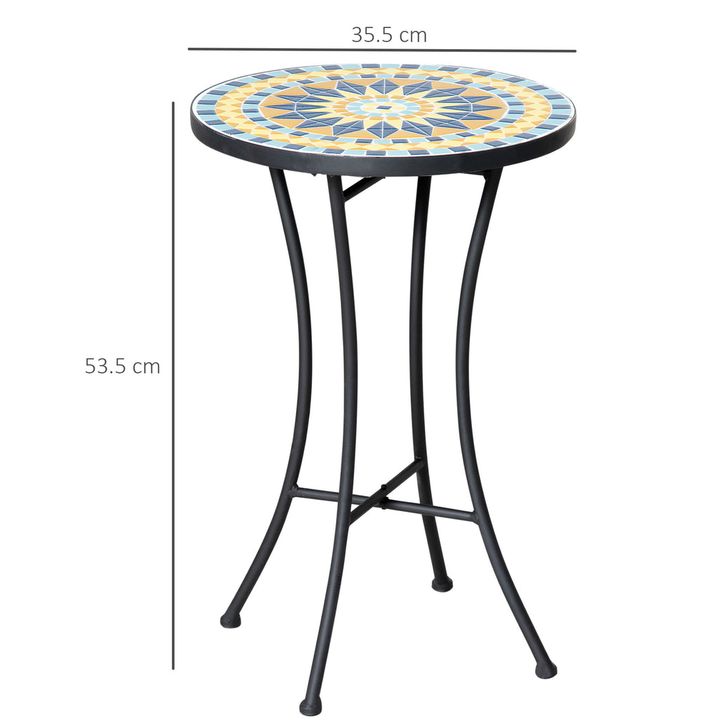 Table Basse de Jardin Ø35,5x53,5 cm en Métal avec Mosaïque