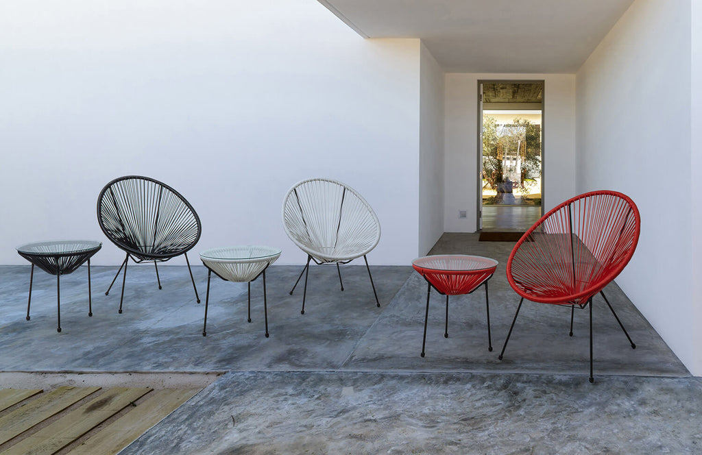 Table Basse de Jardin Ø50x50 cm en Acier et Corde avec Plateau en Verre Blanc Parker