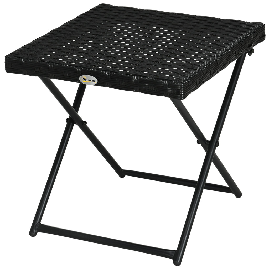 Tavolino da Giardino Pieghevole Salvaspazio 40x40x40 cm in Rattan Sintetico e Acciaio Nero