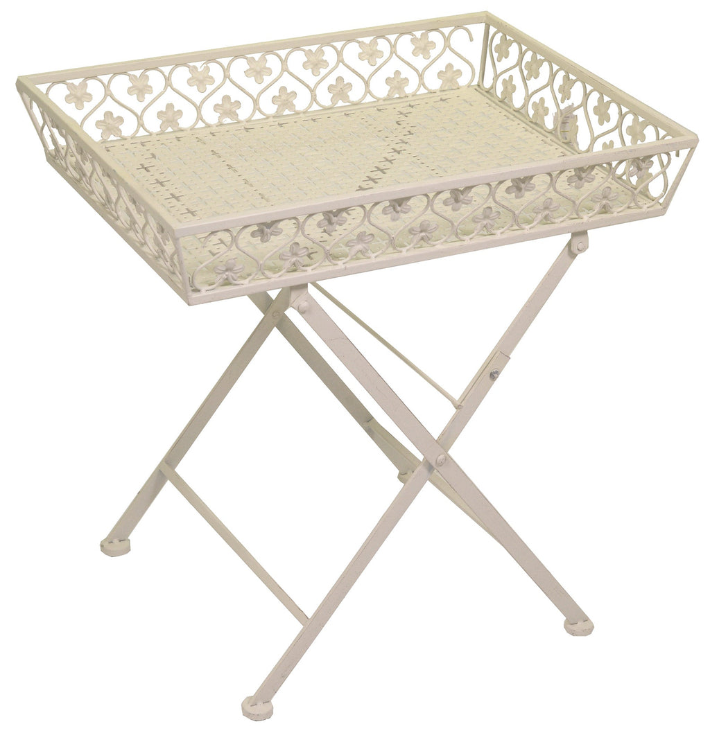 Table Basse de Jardin en Métal Blanc Letizia Avec Plateau 56x42H58,5 cm