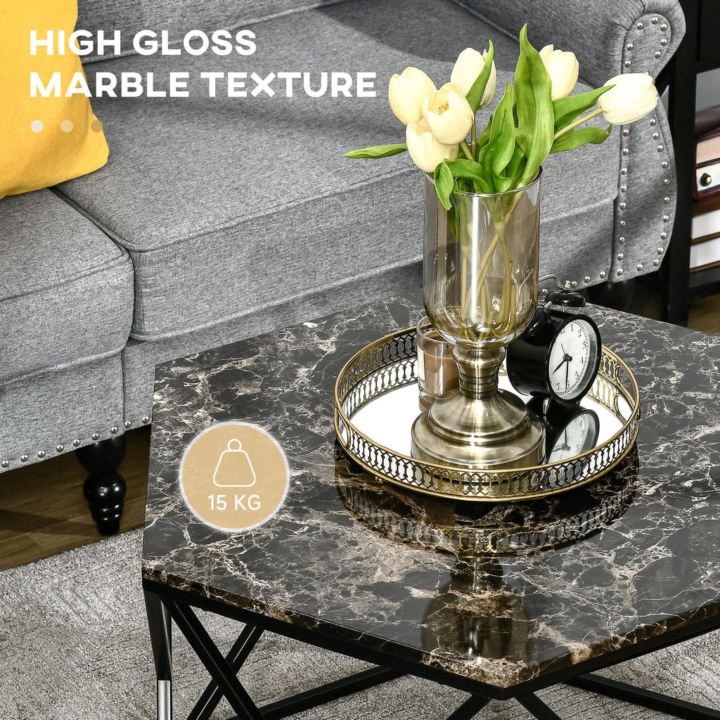 Table Basse 81x70x51,2 cm Plateau Effet Marbre en MDF et Acier Noir
