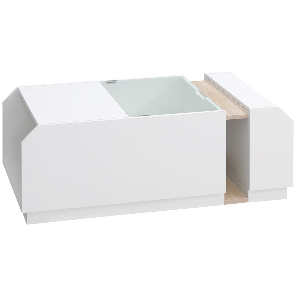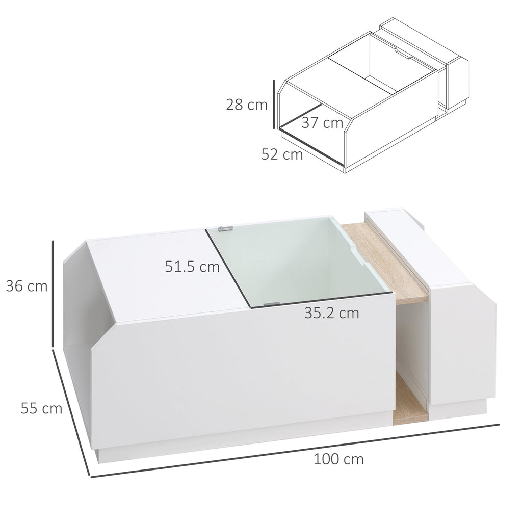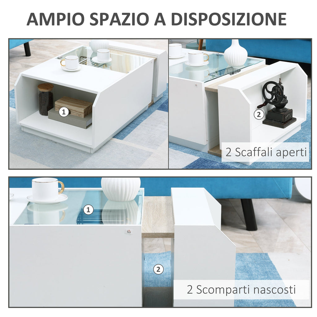 Table Basse avec Étagères et Compartiments Cachés 100x55x36 cm en Bois et Verre Blanc