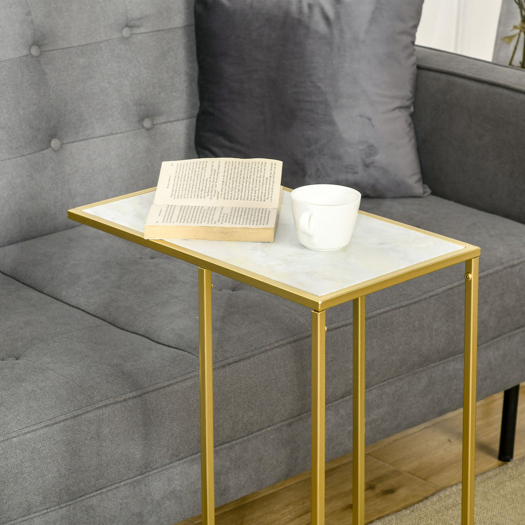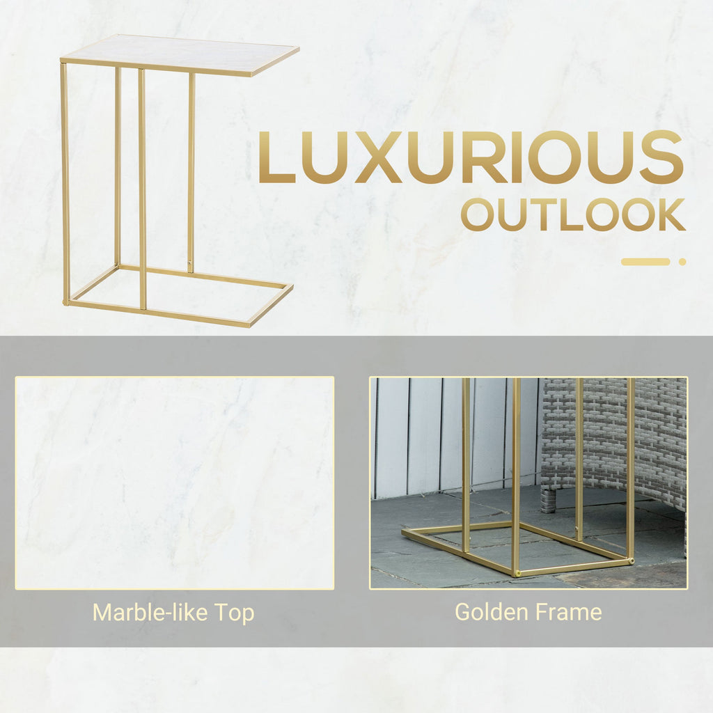 Table Basse de Salon 48x30,5x61 cm en Métal avec Plateau Effet Marbre Blanc et Doré