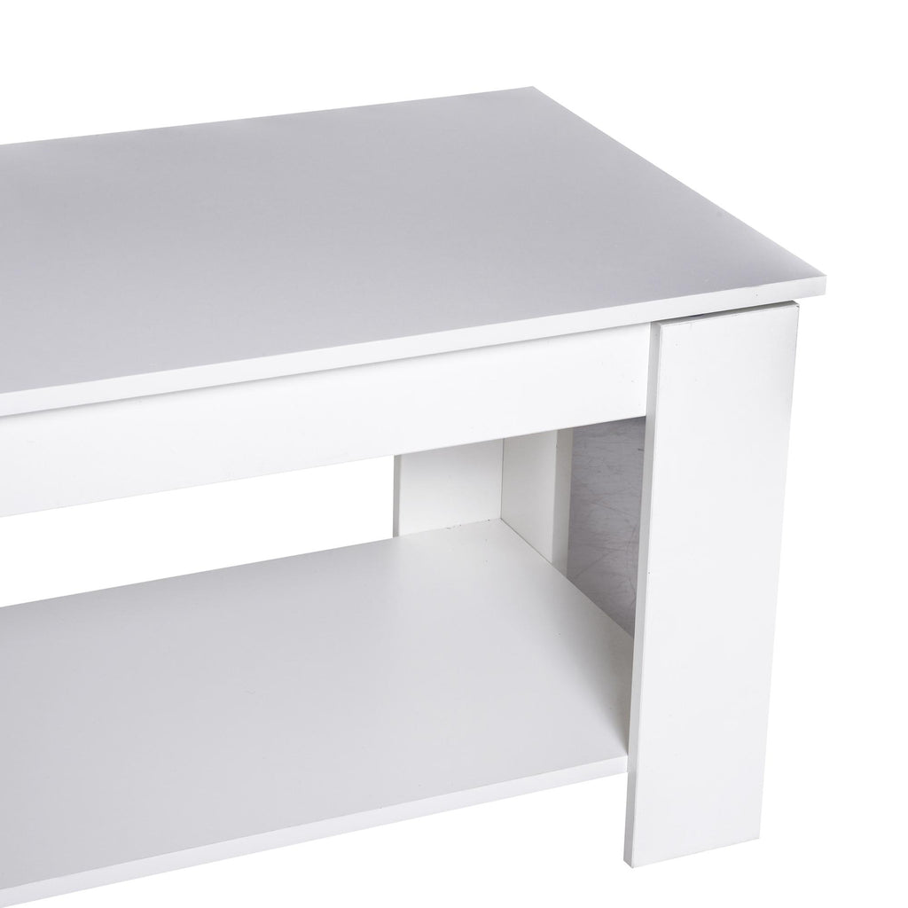 Table basse de salon avec étagère relevable en bois blanc 100x50x63 cm