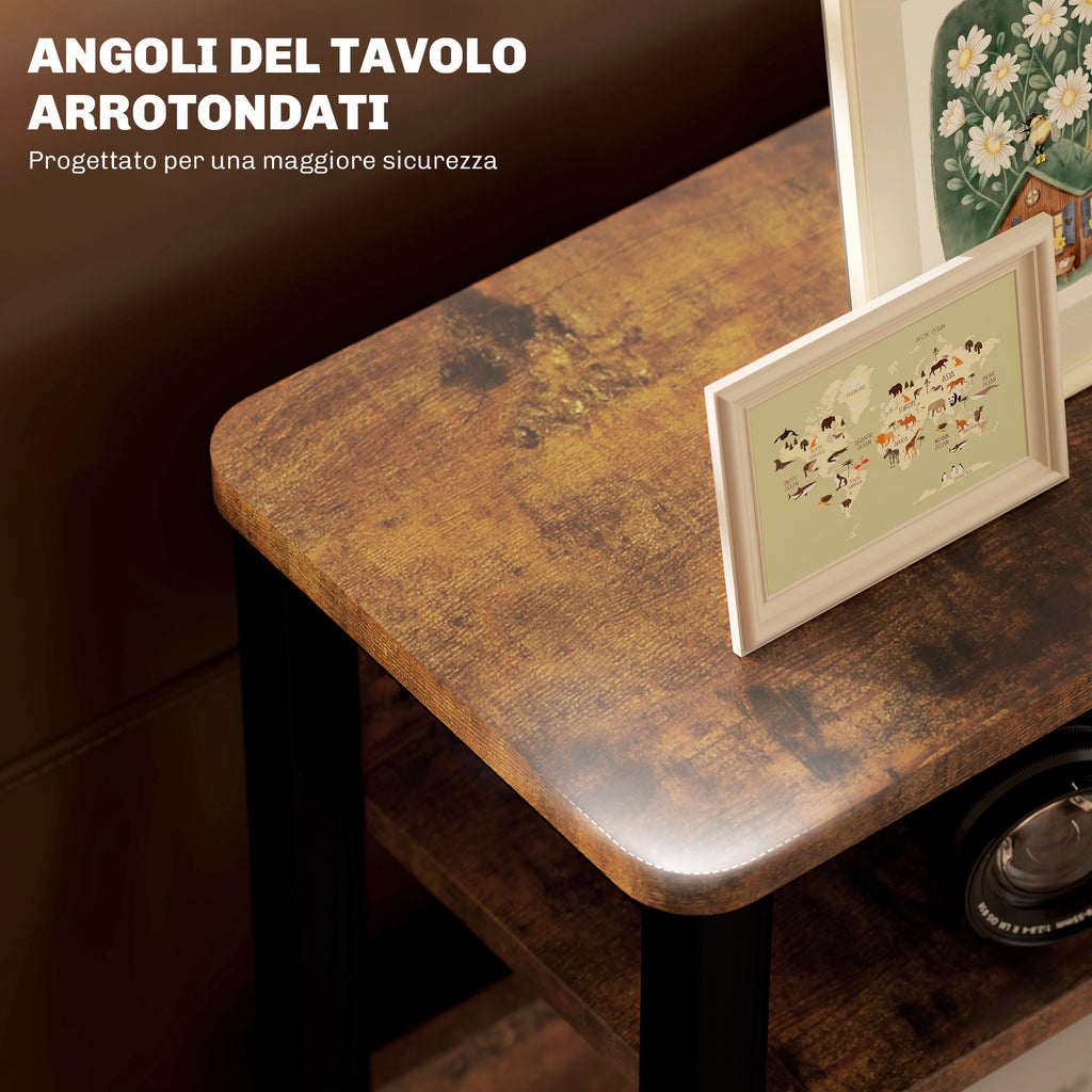 Tavolino da Soggiorno Laterale 46x18x58,5 cm in Stile Industriale 2 Ripiani in Legno e Metallo Marrone