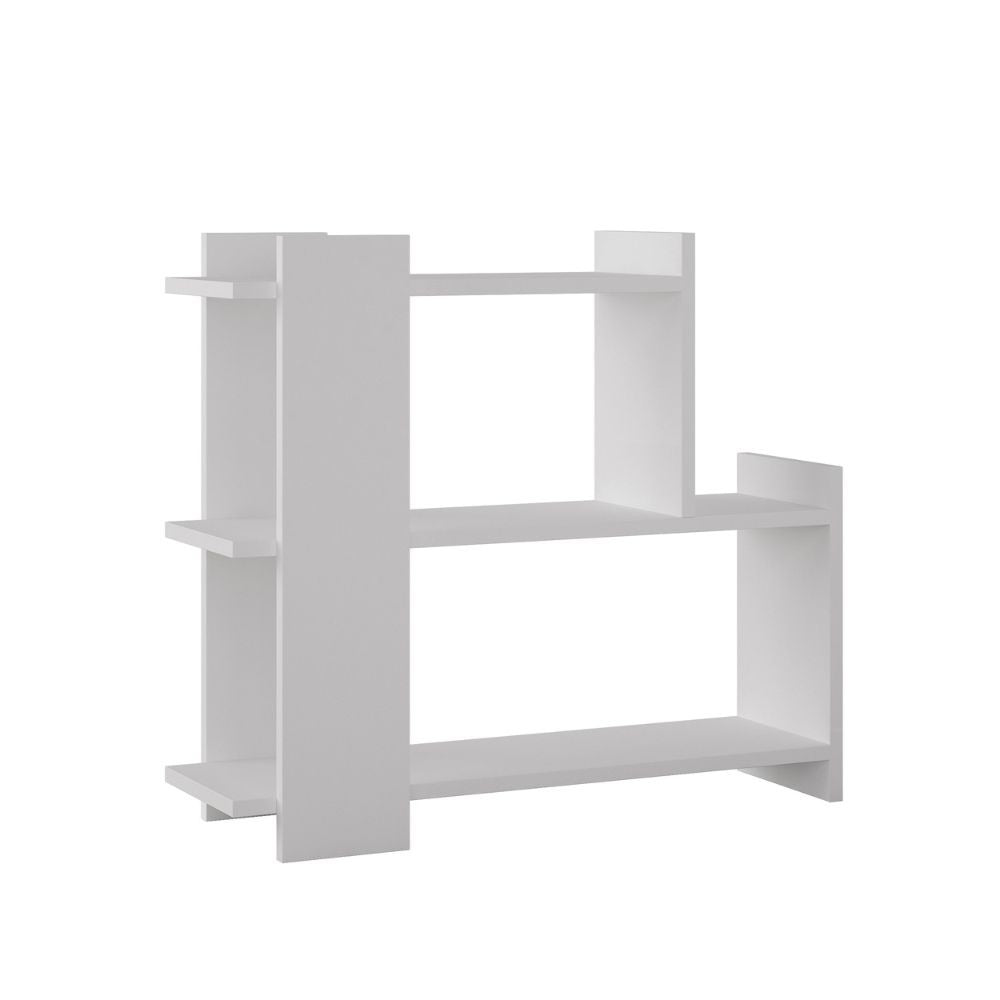 - Il tavolino Mua bianco ha una struttura a tre ripiani in truciolare spesso 18 mm