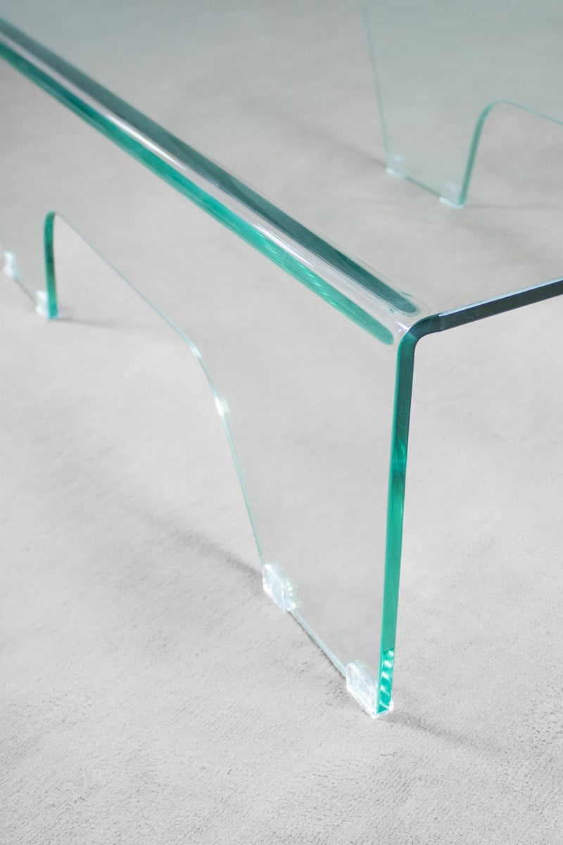 Table basse en verre courbé Ghoy, la beauté et le raffinement d'un meuble qui exprime son élégance avec discrétion et en parfaite harmonie lorsqu'il s'intègre à d'autres styles.