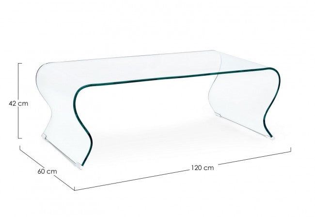 Table basse rectangulaire Iride Curl avec verre 120x60