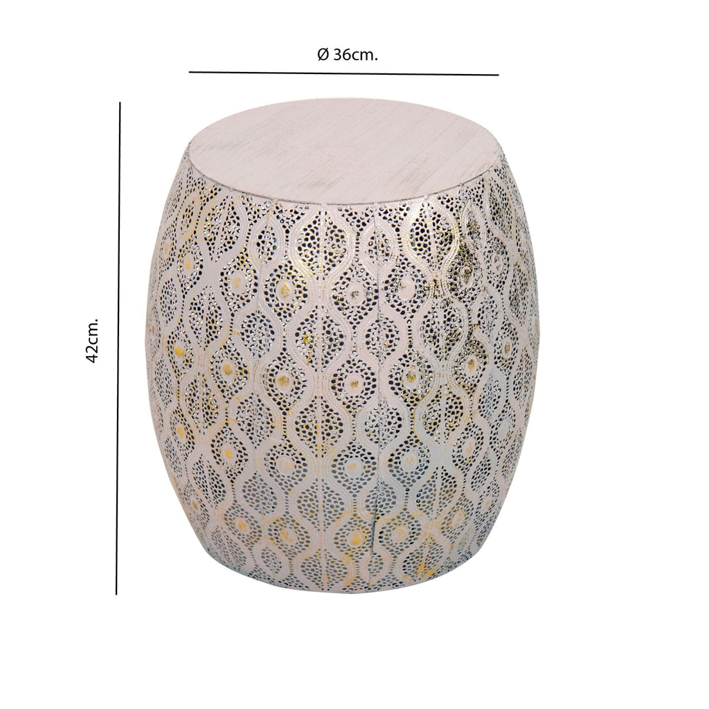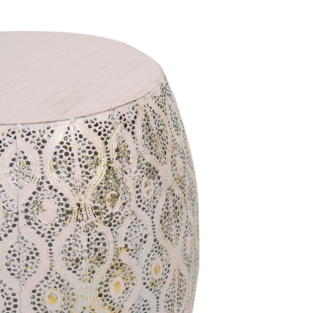 Gracieuse, pratique et particulière, la table basse Lesha est parfaite à côté d'un canapé, dans un salon, mais aussi à côté du lit. Fabriquée en métal, elle ressemble à un cylindre plus large au centre, le pourtour de la table est incrusté de motifs à saveur orientale. Lesha est également rendue spéciale par sa couleur, un rose pâle avec des nuances dorées.