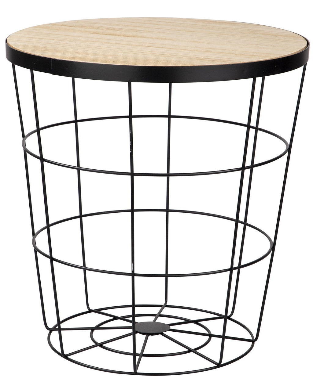 Table Basse Ø38x40 cm en Métal avec Plateau en Bois Noir