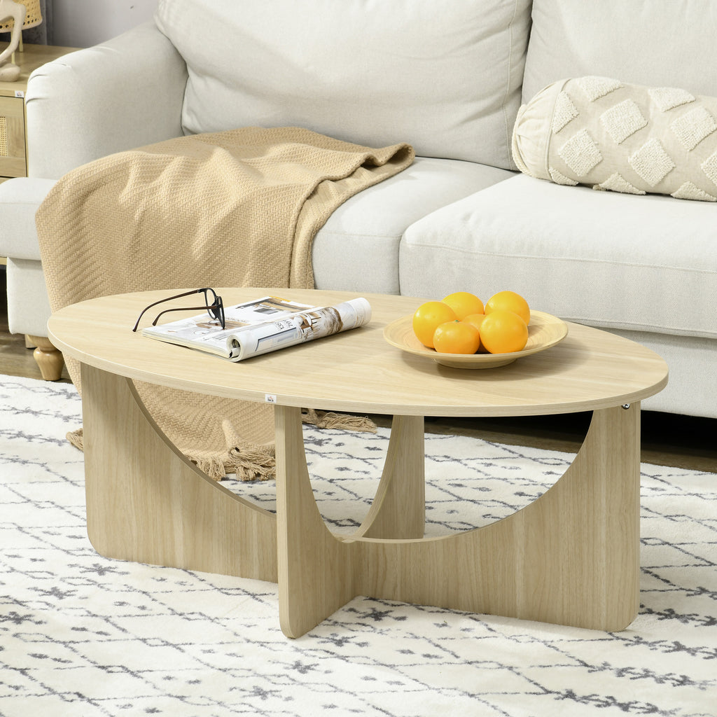 - EFFETTO NATURALE: Il color rovere conferisce al tavolino da caffè un elegante aspetto naturale. Le eleganti gambe a semicerchio e un piano d'appoggio ovale si abbinano perfettamente a diversi stili di arredamento