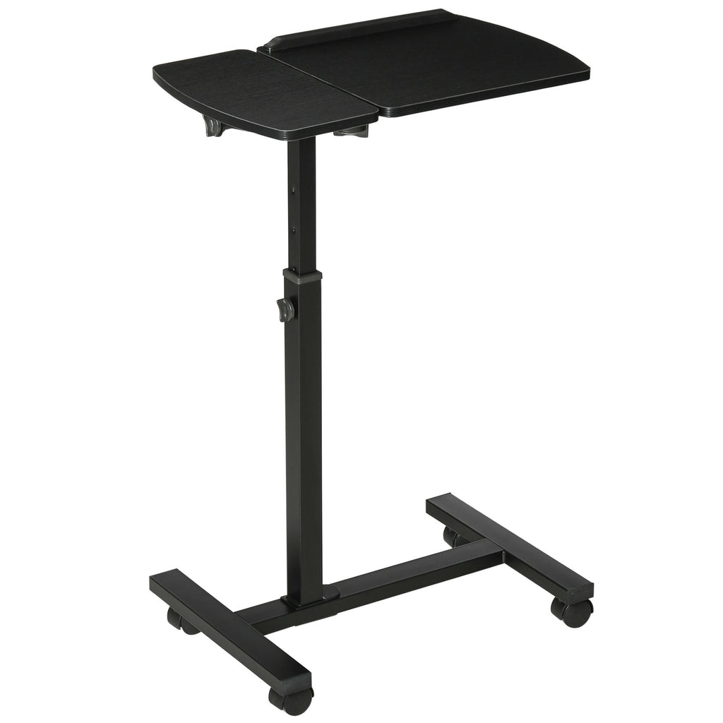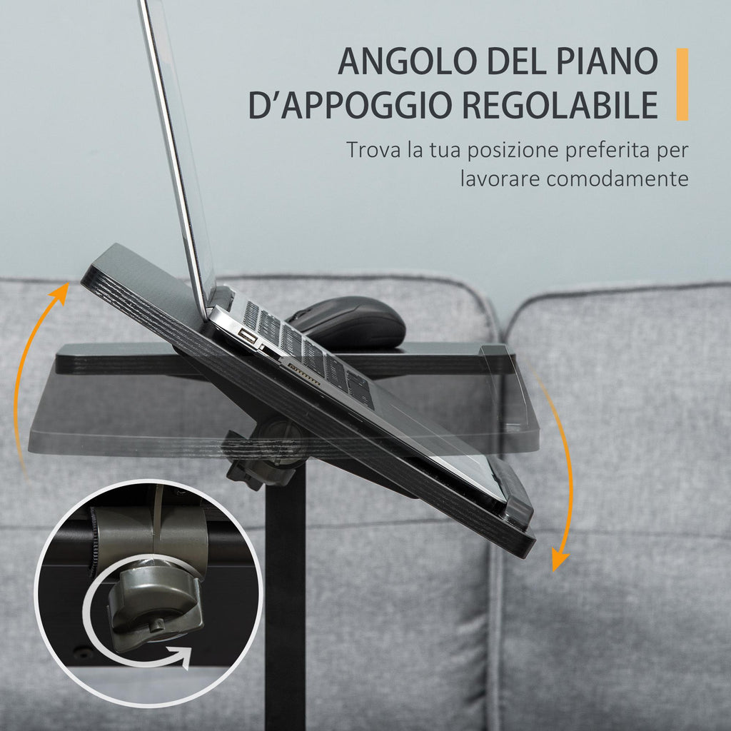 Table pour ordinateur portable 58x34x72-90 cm avec aggloméré et roues en métal noir