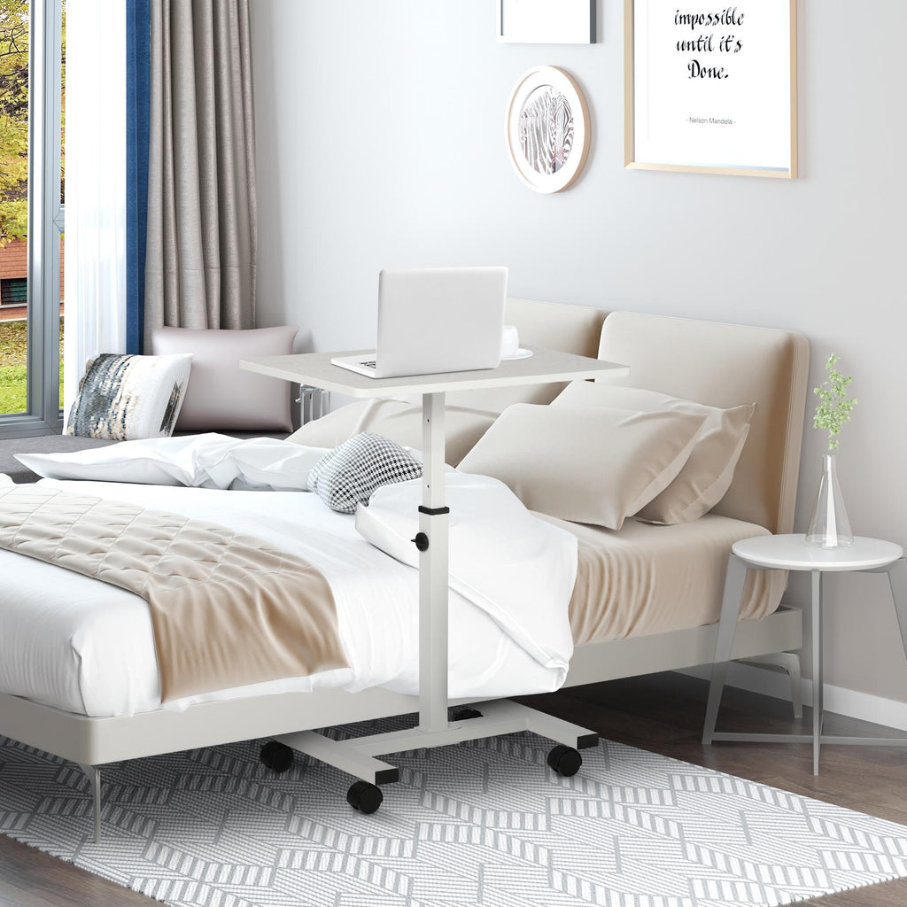 Table PC 60x40x52,5-84 cm avec Roulettes en Aggloméré et Métal Blanc