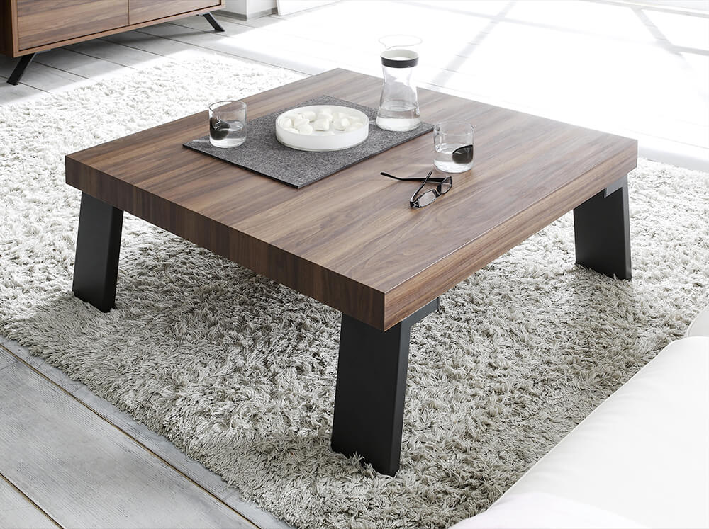 Table Basse Carrée de Salon en Mélamine 40x86x86cm TFT Palmier Noyer