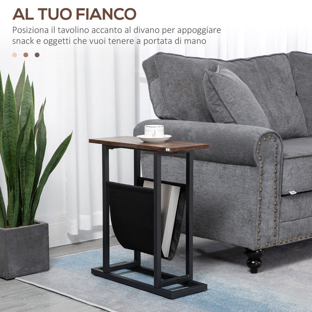 Table basse avec sac de rangement 49x19x55 cm en aggloméré marron et noir et acier