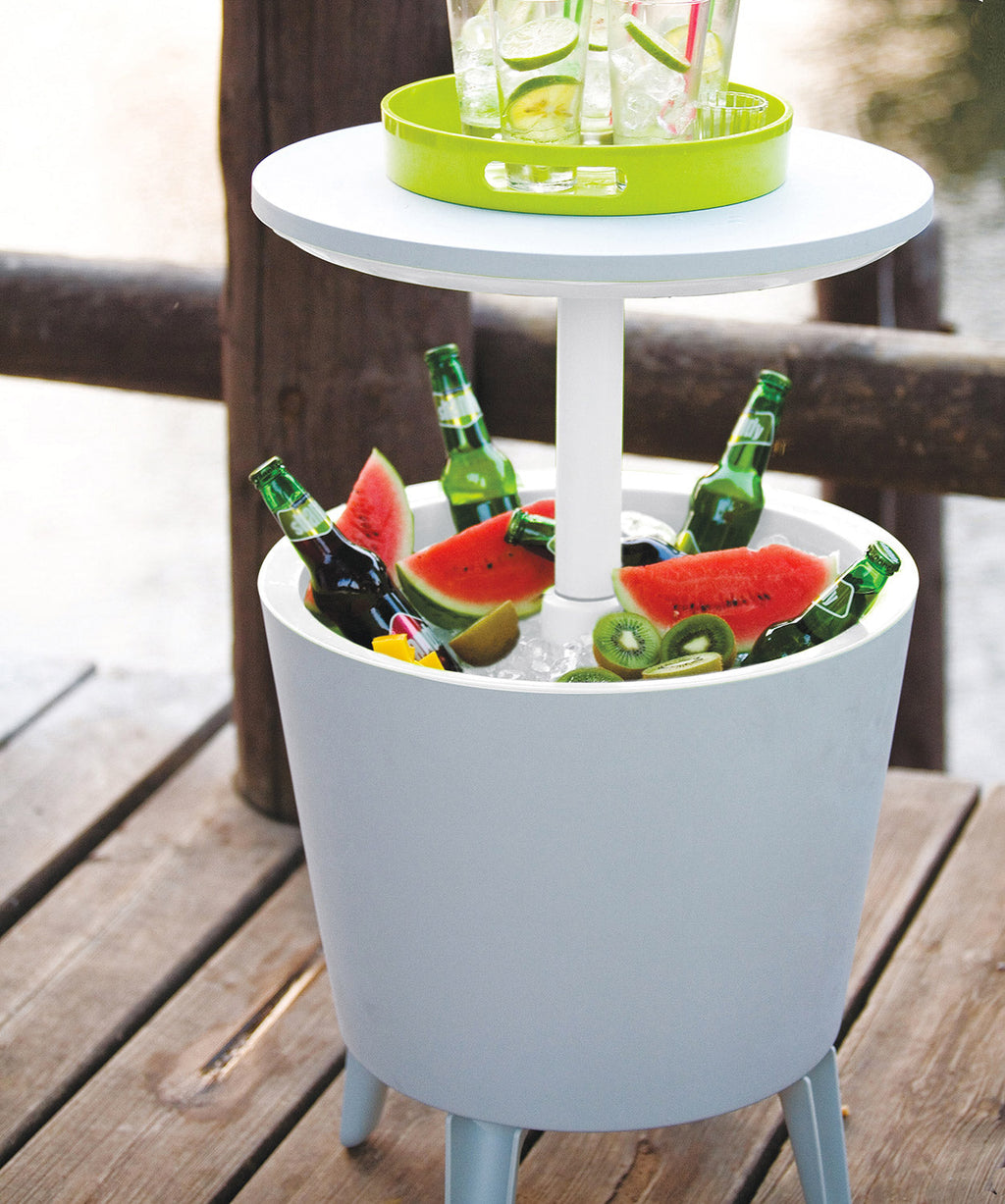 Cool Bar est à la fois une table confortable et un seau à glace pratique pour les barbecues et autres occasions en plein air. Soulevez simplement le couvercle pour remplir le seau à glace avec de la glace et des boissons. Cool Bar est fabriqué en résine durable qui résiste aux intempéries et protège contre la rouille et autres dommages liés aux effets des éléments.