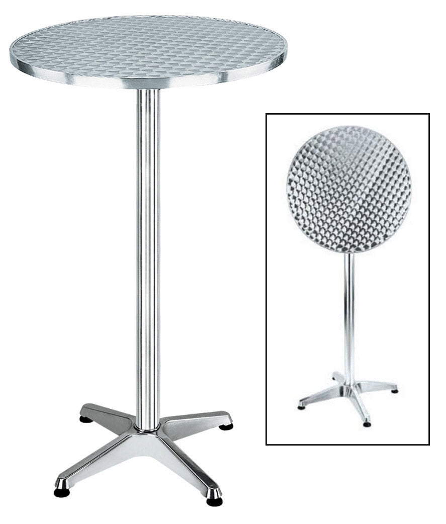 Table modèle club avec structure en aluminium, plateau rabattable en acier inoxydable.