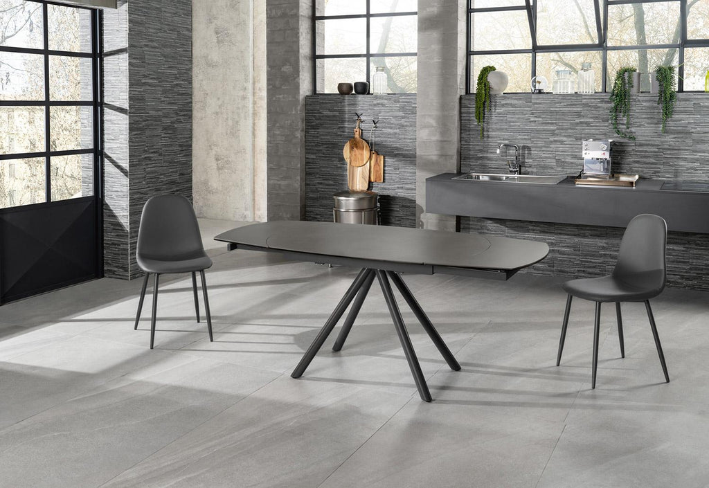 Un design unique qui allie beauté, praticité et simplicité. Bien plus qu'une simple table extensible, un protagoniste de l'ameublement avec ses pieds pyramidaux et les lignes douces du plateau en céramique.