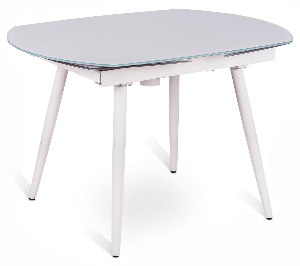 Table extensible 120/180x90x76 cm en métal avec plateau en verre blanc