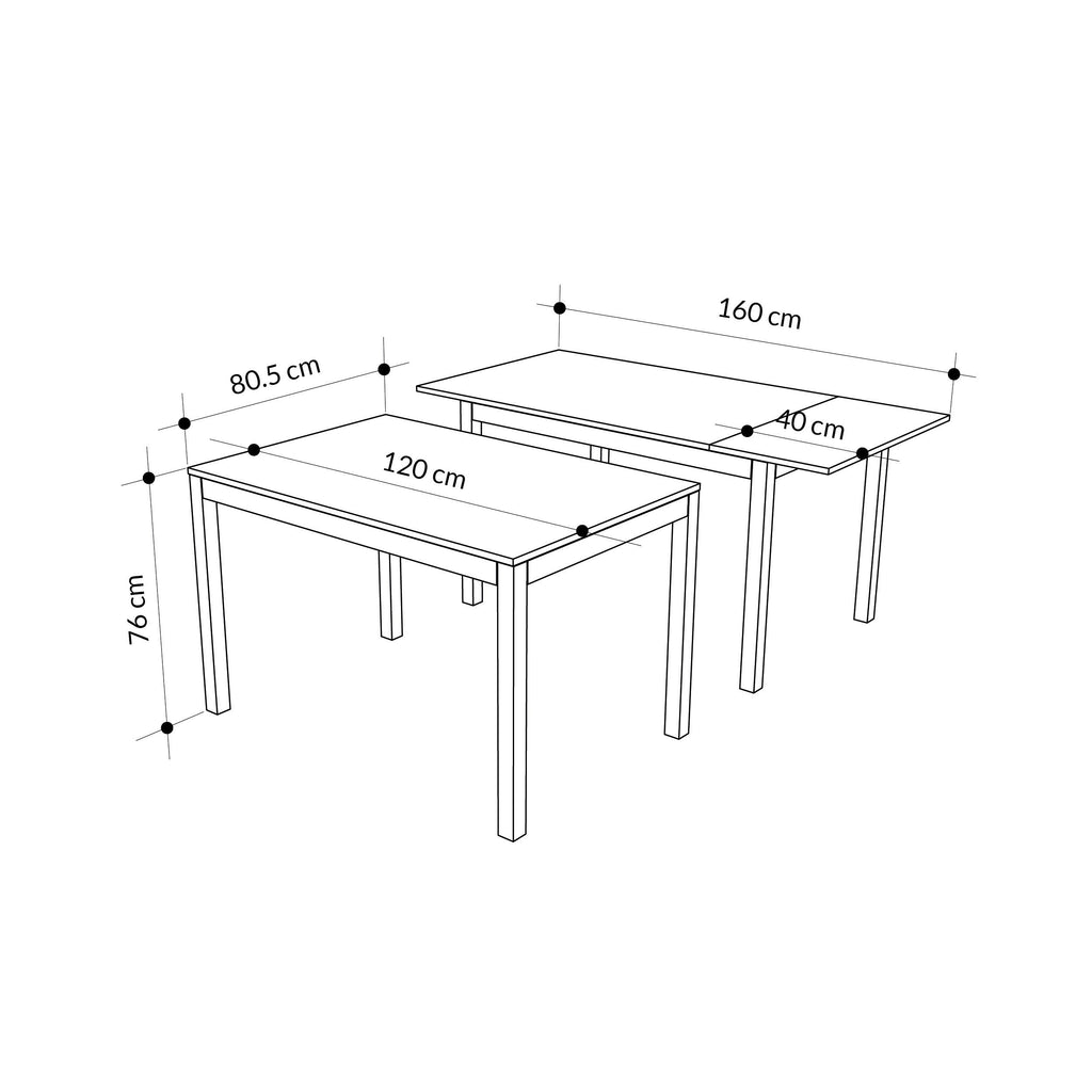 - La table mesure 120x80 cm ou 160x80 cm avec rallonge