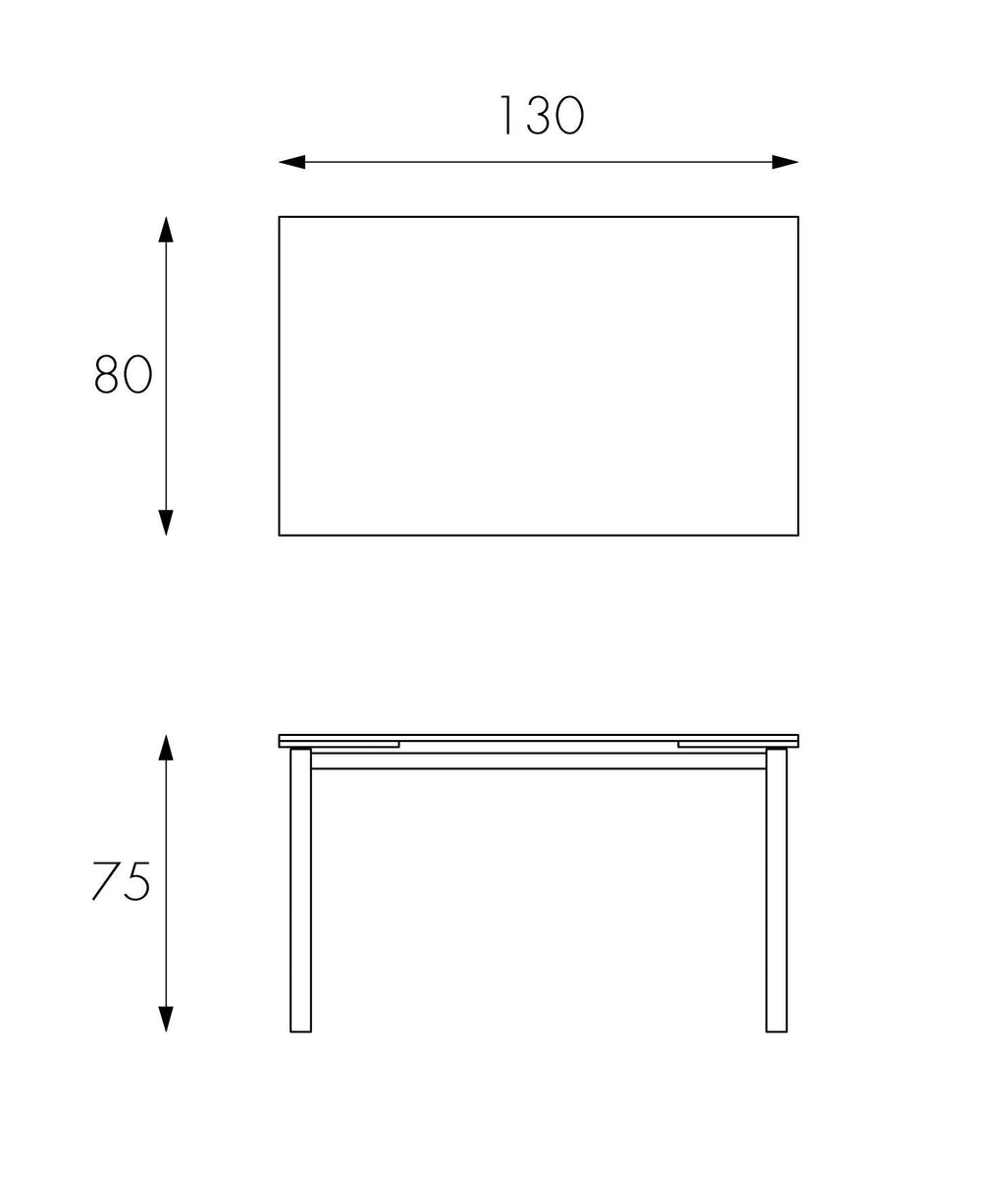 Table extensible 130/200x80x75 cm en métal avec plateau en verre blanc