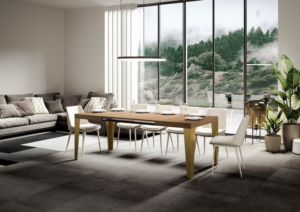 Il Tavolo Flame 130 Allungabile fino a 234 cm è una linea dallo stile stravagante e raffinato, grazie alle particolari decorazioni delle gambe. Le gambe in ferro verniciato è in grado di garantire solidità alla struttura, anche quando completamente esteso. Si adatta ad ogni esigenza di spazio, grazie al particolare sistema di allunghe che gli permette di estendersi fino a 234 cm. Le allunghe presentano la stessa finitura del piano sono alloggiate sotto al piano. Made in Italy con materiali 100% italiani.