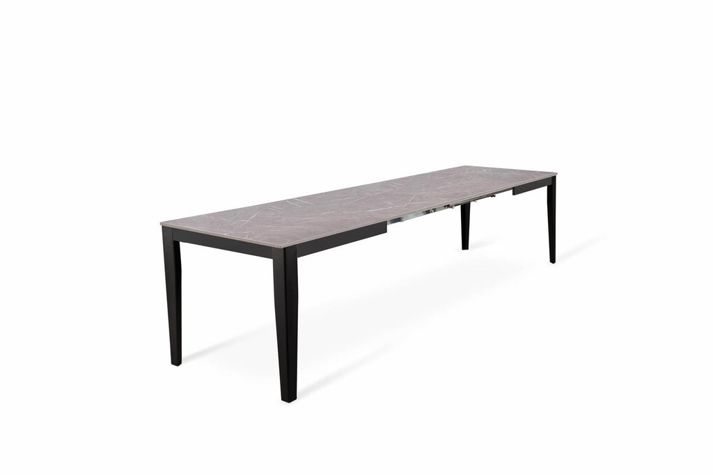 Il tavolo allungabile è caratterizzato da un elegante piano in melaminico marmo antracite, che conferisce una nota di raffinatezza all'arredamento. La sua base in metallo nero garantisce stabilità e resistenza nel tempo, mentre le allunghe interne, abbinate al piano, permettono di aumentare la capacità del tavolo per ospitare fino a 12 persone. Questo tavolo è perfetto per chi desidera un elemento di design funzionale e versatile per i propri spazi abitativi.