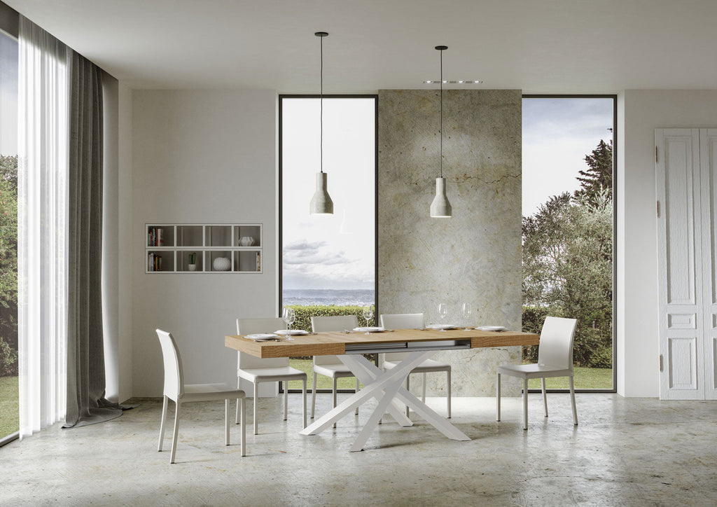 Tavolo Allungabile 140-244x90x77 cm Volantis Quercia Natura Telaio Bianco