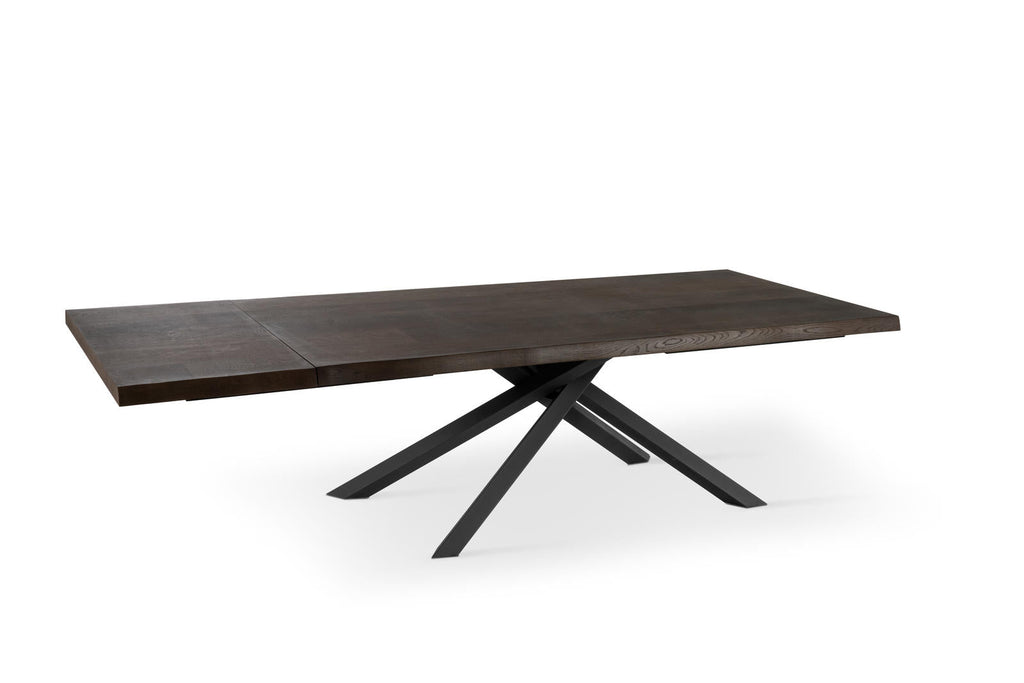 Il tavolo allungabile è caratterizzato da un elegante piano in rovere termocotto, che conferisce un aspetto rustico e raffinato all'arredamento. Le gambe robuste e moderne in metallo verniciato creano un contrasto interessante e garantiscono stabilità al tavolo. Grazie alla sua funzione allungabile, questo tavolo può essere facilmente adattato per ospitare un numero maggiore di persone durante le cene o le riunioni familiari. È la scelta ideale per chi desidera unire il calore del legno con un design contemporaneo.