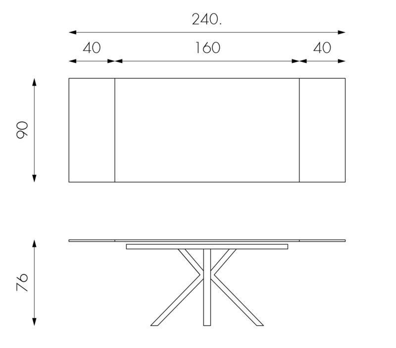 Table Extensible 160/240x90x76 cm en Métal avec Plateau en Céramique sur Verre Marbre Gris