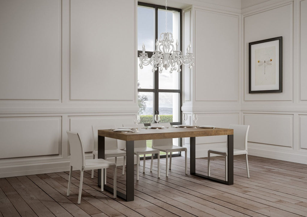 Allungabile progressivamente fino a 440 cm con 5 allunghe con lavorazione a Fonding bordo H 8 cm