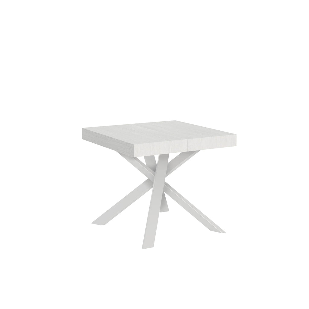 Tavolo Allungabile 90-194x90x76 cm Clerk Bianco Frassino Gambe Bianche