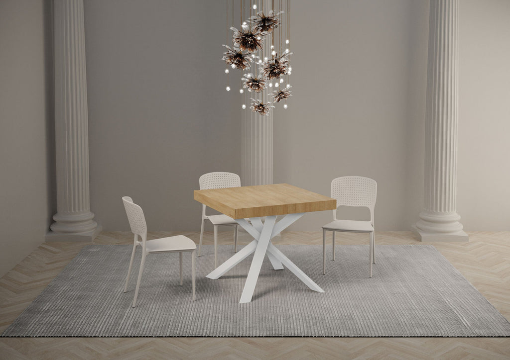 Tavolo Allungabile 90-194x90x76 cm Clerk Quercia Natura Gambe Bianche