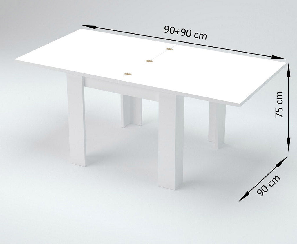 Il tavolo allungabile JESI da chiuso misura 90 cm, mentre aperto arriva fino ai 180 cm. Mobile che chiuso è adatto ad accogliere circa 4 persone, ben 8 persone se il tavolo è aperto. Il tavolo è massiccio e molto stabile con una superficie il legno massiccio di qualità. Il tavolo allungabile JESI a libro 90 cm viene consegnato con un pratico kit di montaggio e istruzioni, per poterla installare in modo semplice.