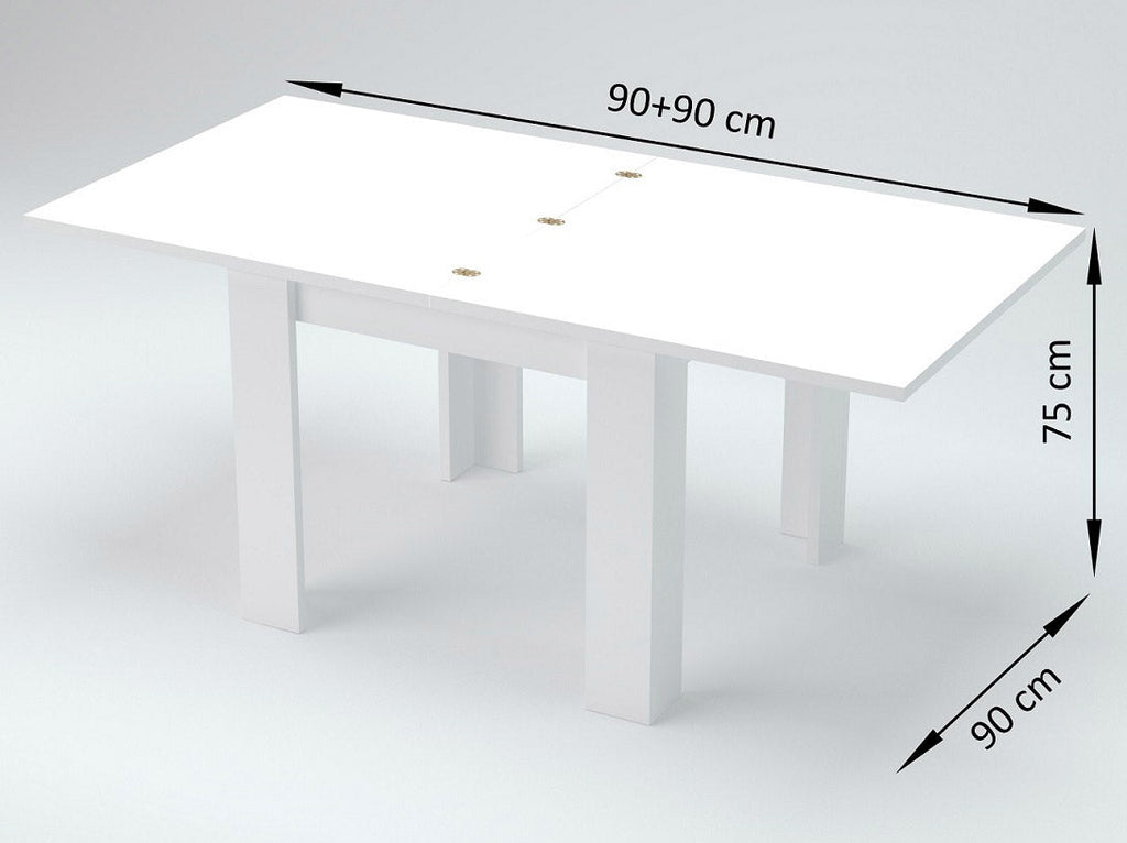 Il tavolo allungabile JESI da chiuso misura 90 cm, mentre aperto arriva fino ai 180 cm. Mobile che chiuso è adatto ad accogliere circa 4 persone, ben 8 persone se il tavolo è aperto. Il tavolo è massiccio e molto stabile con una superficie il legno massiccio di qualità. Il tavolo allungabile JESI a libro 90 cm viene consegnato con un pratico kit di montaggio e istruzioni, per poterla installare in modo semplice.