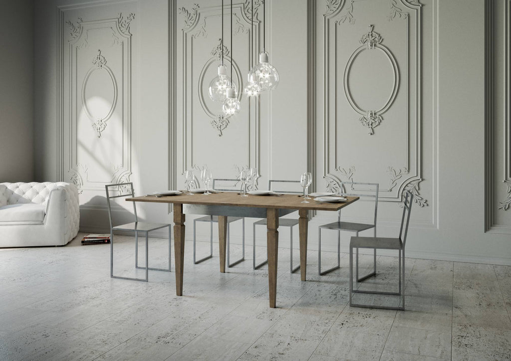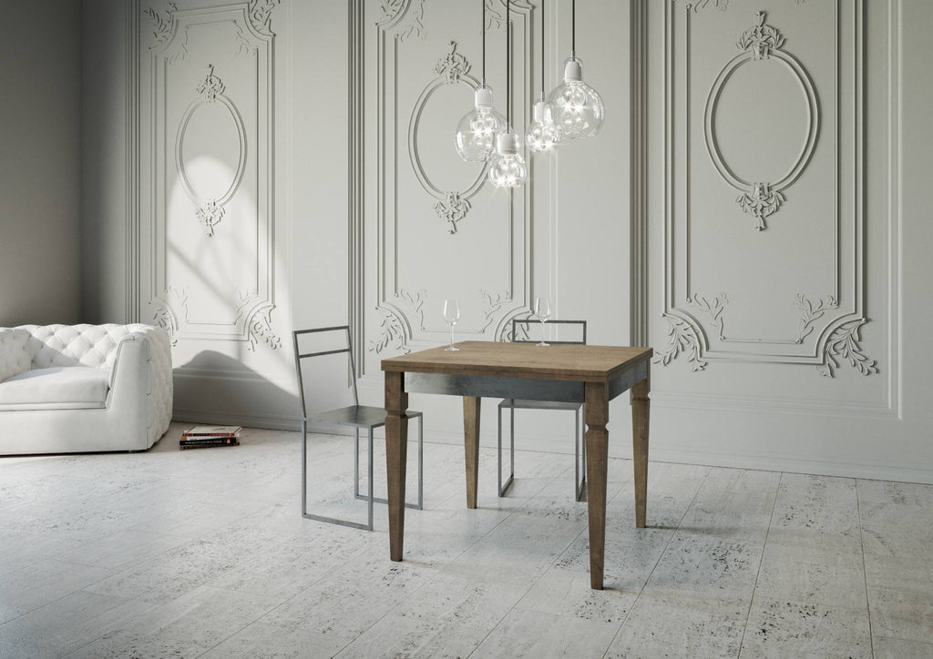 Tavolo Impero Librox cm.90. Tavolo Impero Librox 90x90 apribile a 180x90. La caratteristica del Tavolo Impero Librox che lo differenzia dal Tavolo Libra è la struttura in metallo del telaio perimetrale. Il telaio in metallo dona così al Tavolo una robustezza e una rigidità senza pari, adattandolo ai più svariati utilizzi. E' un Tavolo quadrato 90x90 estremamente robusto e compatto nelle sue dimensioni originali. Il piano quadrato da 90 centimetri è composto da due piani. Facendolo scorrere sulle apposita guida, aprendolo a libro, in pochi secondi può essere trasformato in un Tavolo rettangolare da 180x90 raddoppiando l'area di utilizzo. Piano in microparticelle di legno e Telaio in acciaio verniciato. Realizzata interamente in Italia mediante l'utilizzo di materiali 100% italiani. Composta essenzialmente da tre parti: struttura portante in metallo verniciato, piano superiore in microparticelle di legno apribile a libro su guida in metallo e gambe in legno massello.