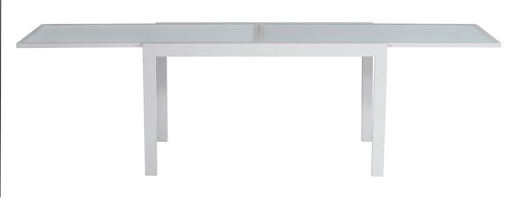 Tavolo Allungabile da Giardino 135/270x90x74 cm Selinunte in Alluminio Piano in Vetro Bianco