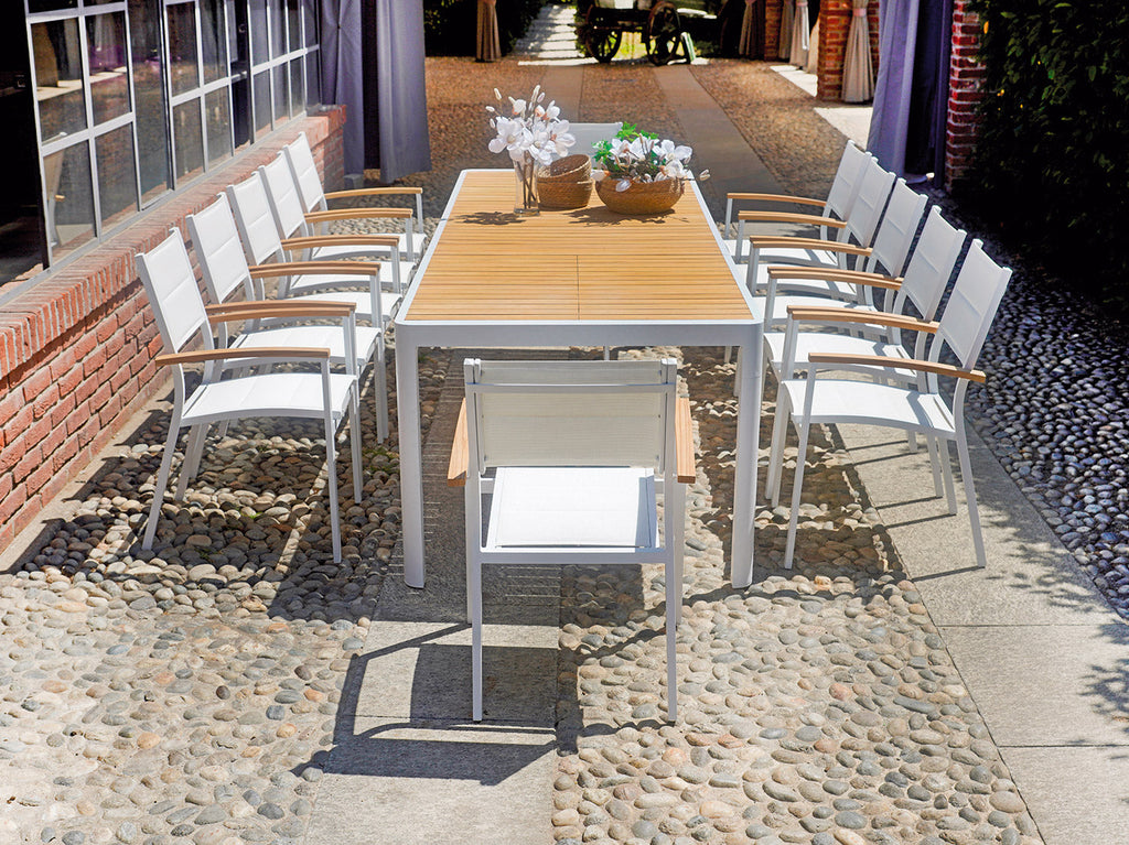 Tavolo Allungabile da Giardino 200/300x100x76 cm Lanzarote in Alluminio e Doghe in Teak Bianco