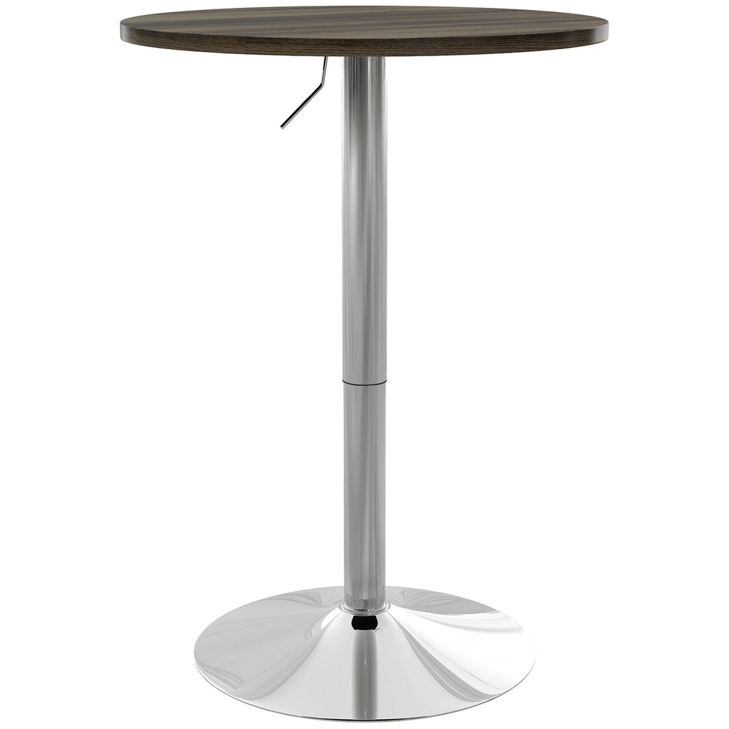 Tavolo Alto da Bar con Altezza Regolabile Piano Girevole e Base Ø60x69-91 cm in Acciaio Marrone