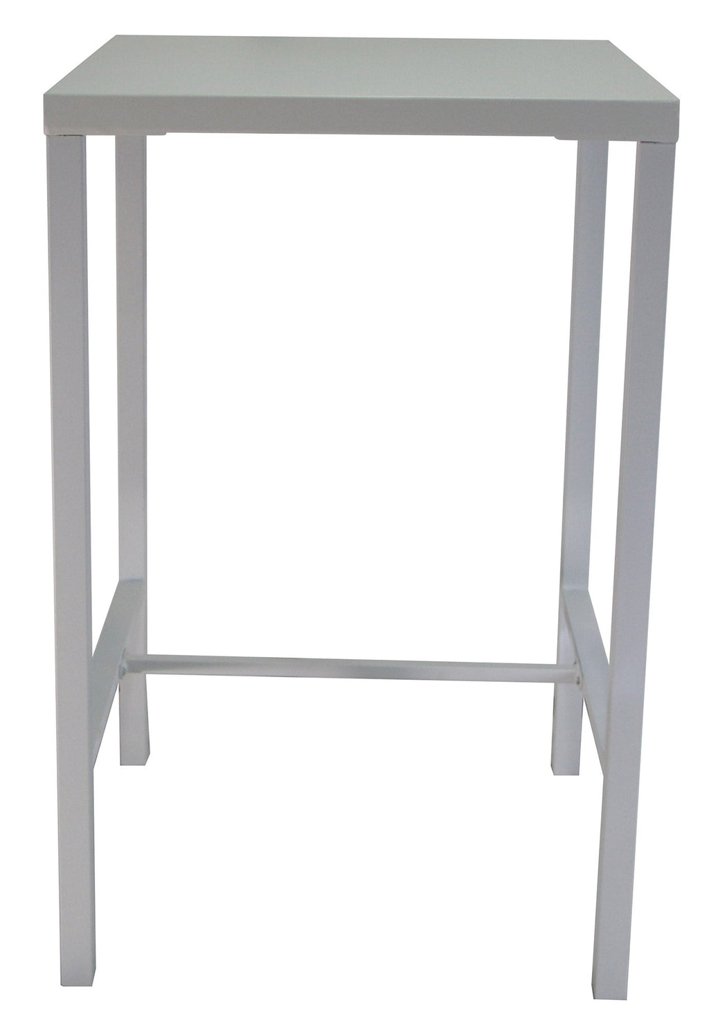 Table haute de jardin 70x70xH110 cm en métal utilitaire blanc
