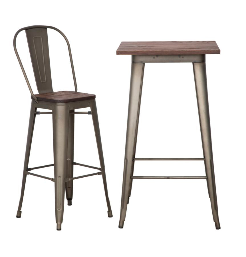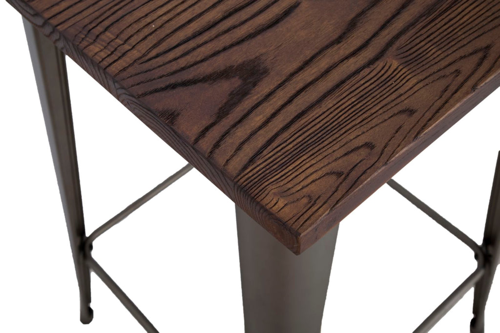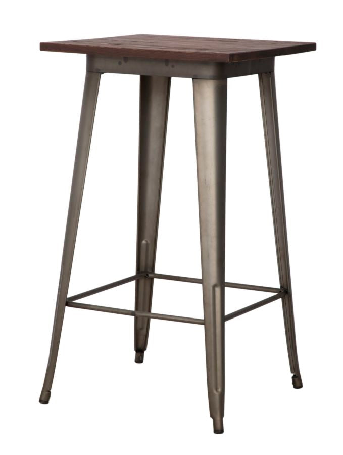 Table de Bar Detroit Carrée 60x60x105 cm en Fer et Bois d'ORME