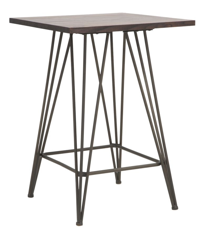 Table de bar carrée en métal et bois. Un style industriel sobre capable de se fondre parfaitement avec tout type de mobilier. Le bois et le fer créent un contraste de matières très actuel.