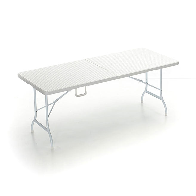 Table à bière de jardin pliante en fer et rotin Taddei Plastik 180 Blanc