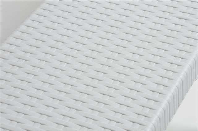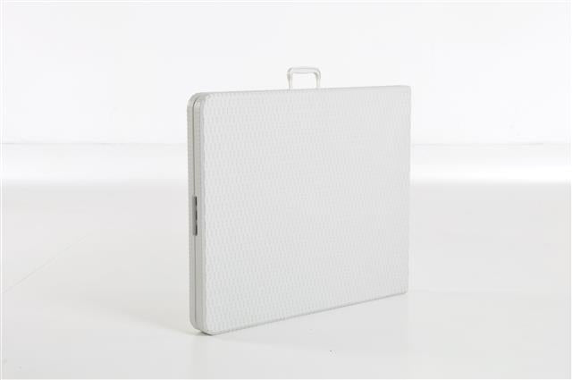 Structure de la table en fer thermolaqué blanc, surface d'appui en HDPE (polyéthylène haute densité) blanc avec traitement UV, épaisseur de la surface d'appui 4,3 cm,cm 180 X 75 X h 72 (ouvert). 90 X 75 X 8,6 cm (fermé), section tubulaire d. mm 25 X 1,0